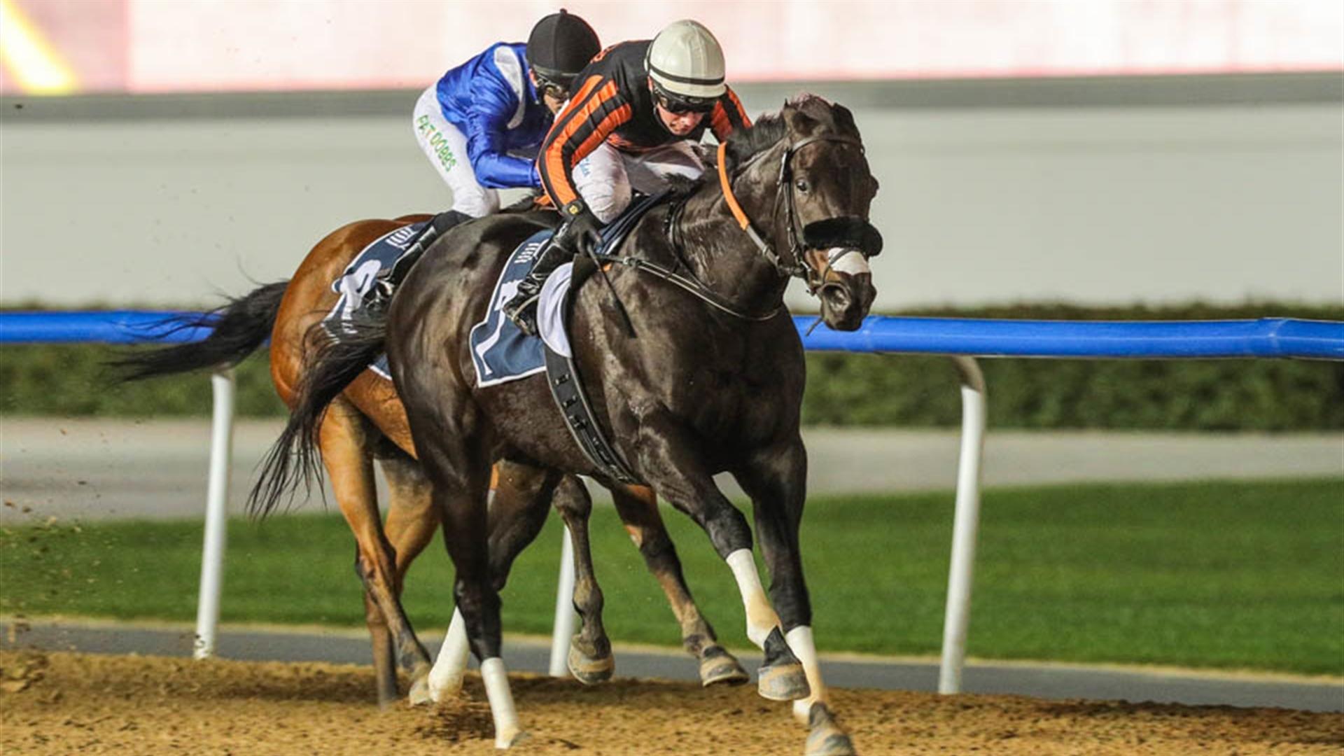 Hard Taskmaster (IRE) (Fawzi Nass – Brett Doyle) wins the Riviera 2 at the ninth Racing at Meydan meeting on February 29, 2020. (Credit: Dubai Racing Club // Erika Rasmussen)