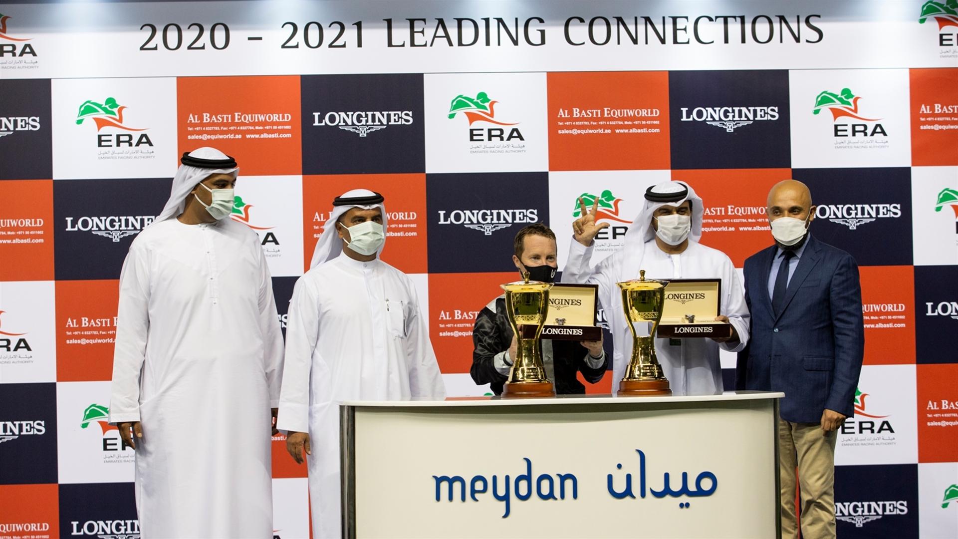 Khalid Khalifa Al Nabooda accepts the trophy for the 2020 - 2021 Leading…